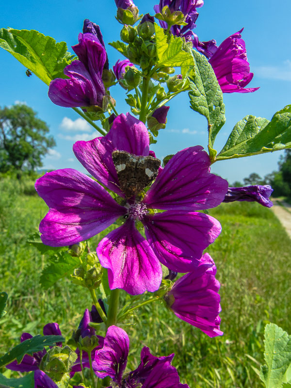 Mauretanic Mallow (Malva sylvestris subsp. mauritanica/Malva mauritiana) - with a visitor, Field bindweed moth (Tyta luctuosa) - thanks to Armin Dahl for help to identify.