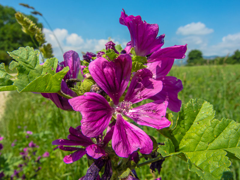 Mauretanic Mallow (Malva sylvestris subsp. mauritanica/Malva mauritiana) along the path.