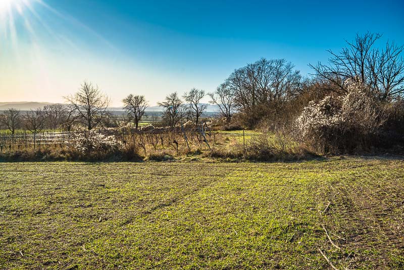 Zur Abwechslung einmal ein wolkenloser Tag, den ich für einen Spaziergang über die Felder von Saubersdorf nutze.