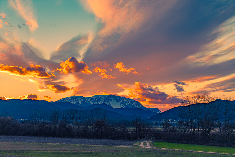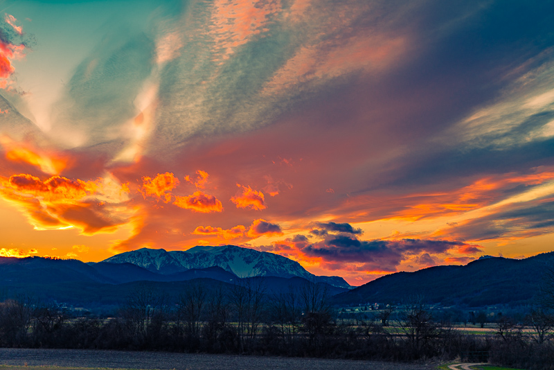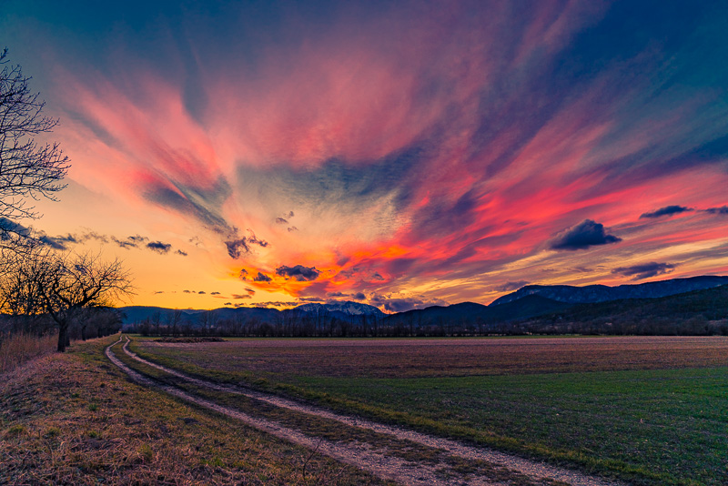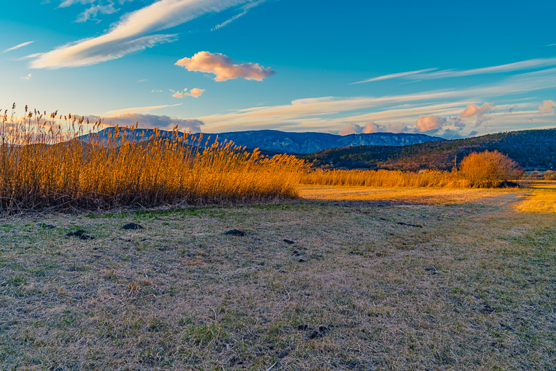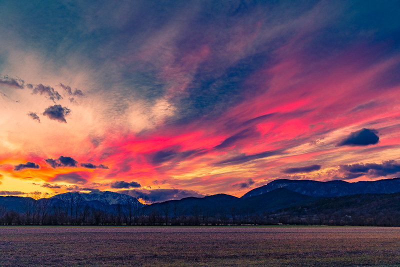 The very last light, and the high clouds nearly adopt a purple glow.