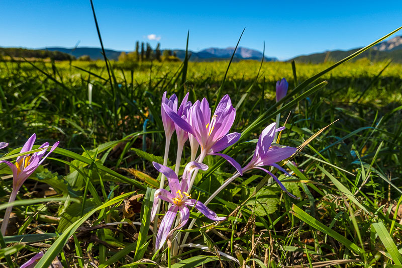 Last autumn crocus (Colchicum autumnale) on a narrow grass band along the Mori beck, beneath apple trees.