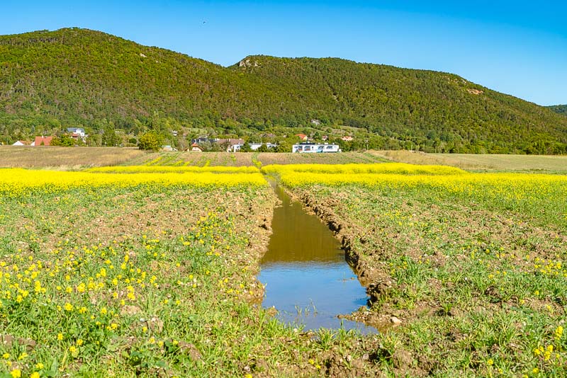 First down along the Frauen beck to Weikersdorf. After recent frequent rain and heavy rain last night, many puddles on the fields.