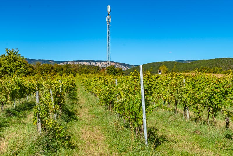 Between Saubersdorf and the hill with the transponder ("Gesanger Bühel"), a gravel road leads in between. Here is a single small vineyard.