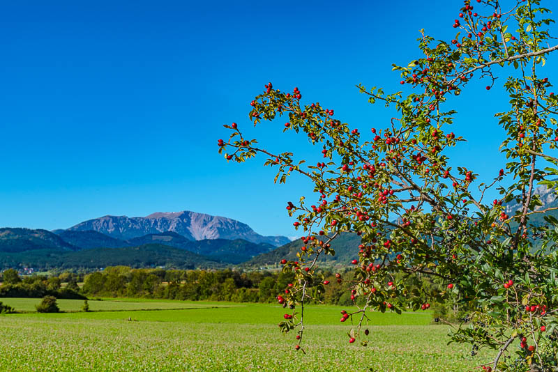 Mustard seed and the view to Schneeberg and Hohe Wand.