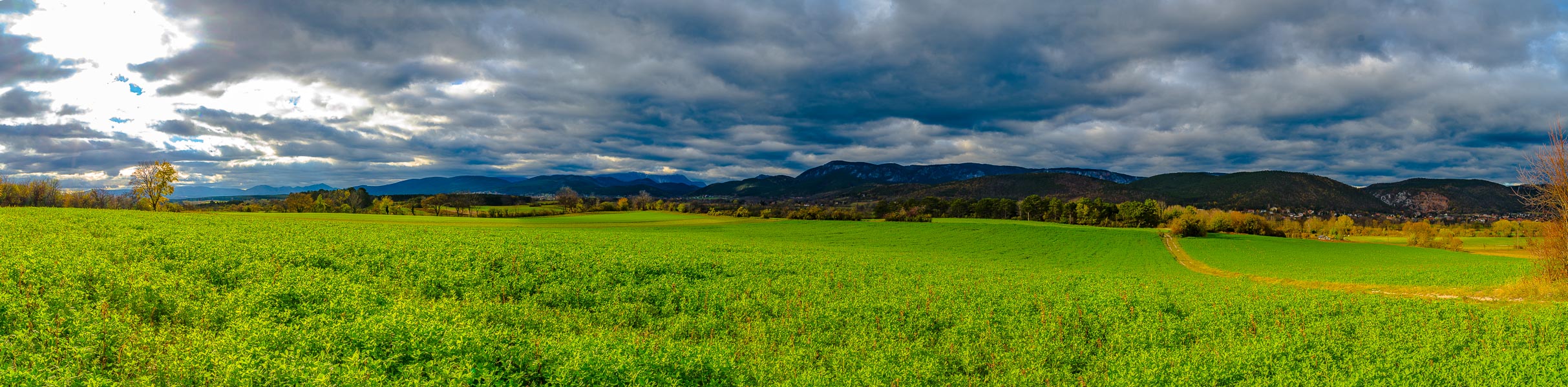 Panoramablick vom Gesanger Bühel bei Saubersdorf Richtung Wechsel, Semmering, Schneeberg und Hohe Wand.