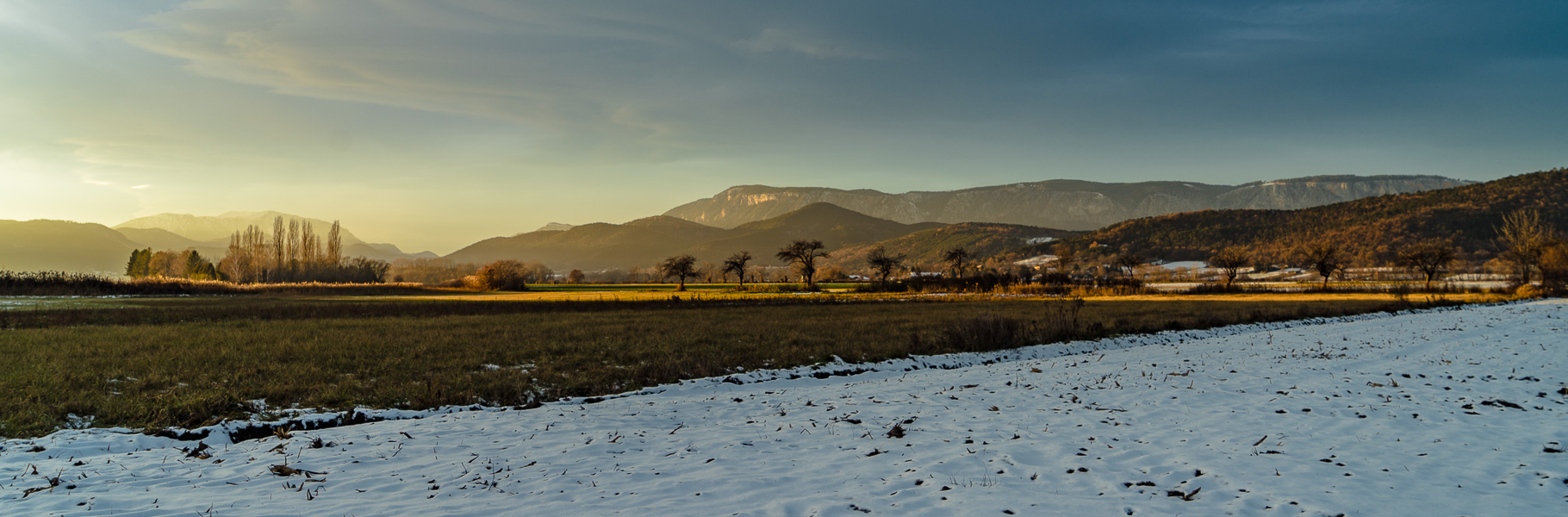 Das Waldstück auf der linken Seite wirft jetzt einen langen Schatten.