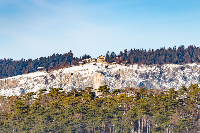 Mit der weitesten Einstellung (150 mm) geht gerade der ganzer Schneeberg ins Bild.