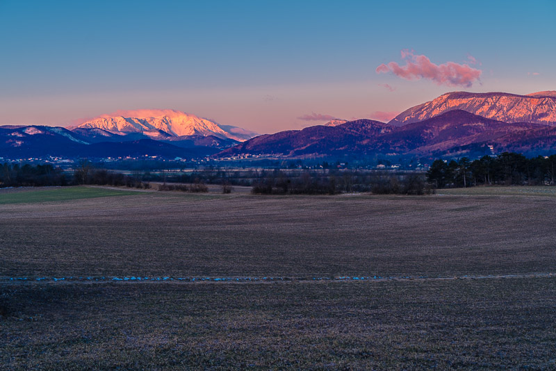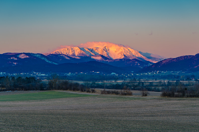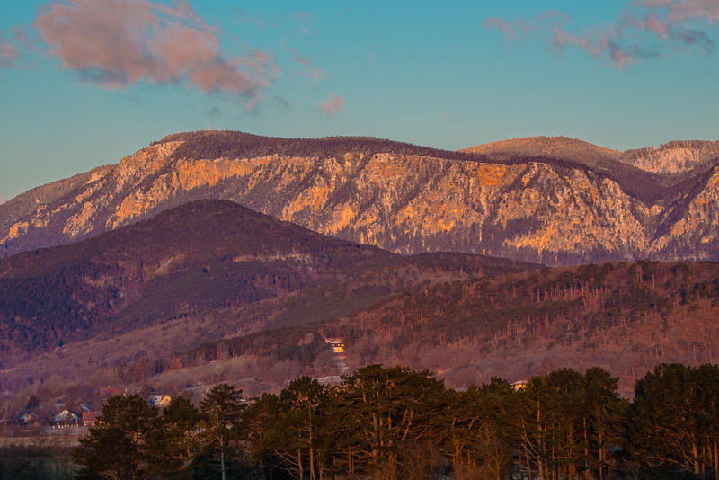 Jetzt bekommt auch die Hohe Wand erste Sonnenstrahlen.