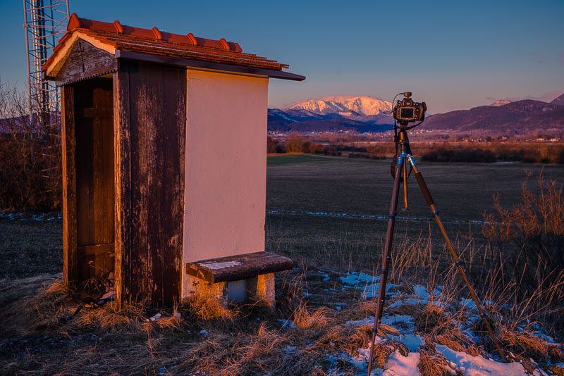 Ich bin früh aufgewacht, habe aus dem Fenster geschaut und festgestellt, dass die Sonne scheinen wird - in ungefähr einer halben Stunde. Schnell angezogen (5 Schichten angesichts des strengen Morgenfrostes) und zum Gesanger Bühel gefahren, zum morgendlichen Fotoshooting.
