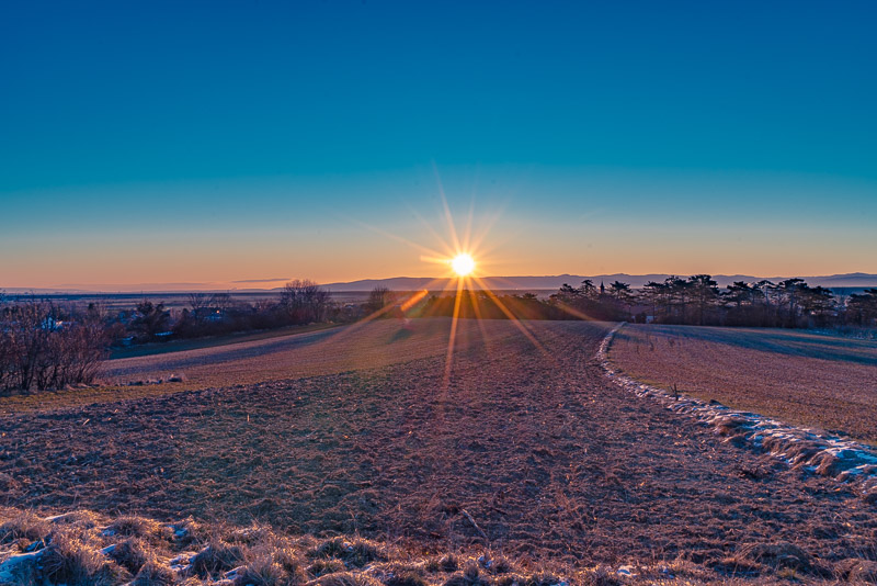 Jetzt geht auch hier die Sonne auf - hinter dem Rosaliengebirge.
