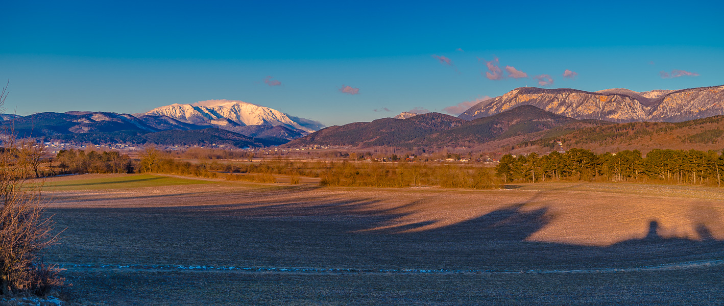 Schneeberg und Hohe Wand, vom Gesanger Bühel aus gesehen.