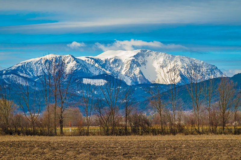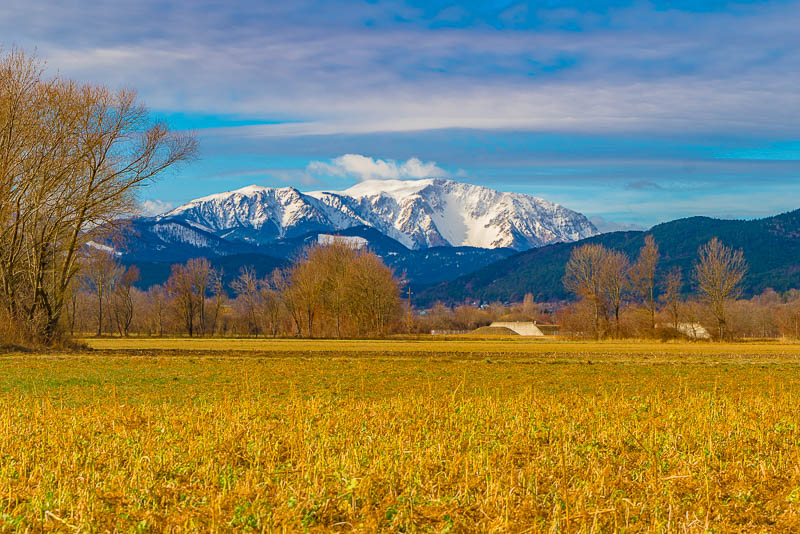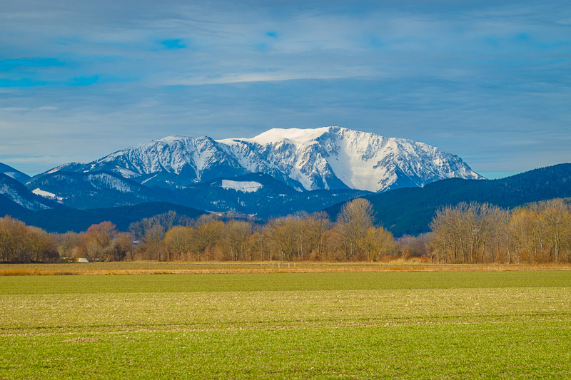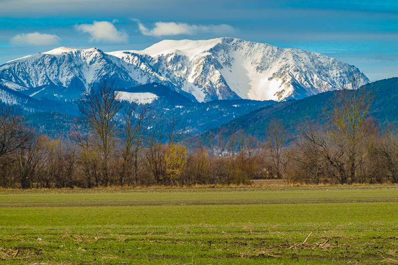 Schneeberg in a special light today - shadow from a clouds on the fields, and sun on the summit.