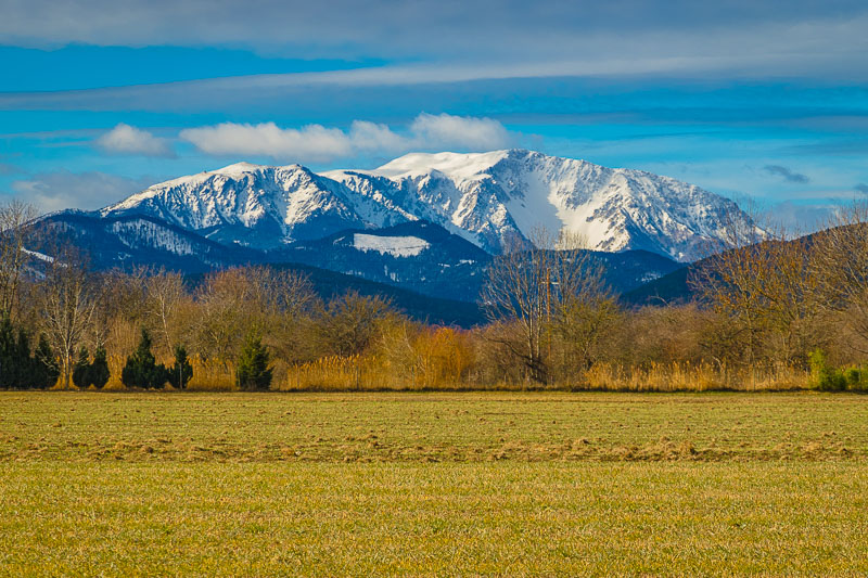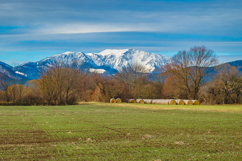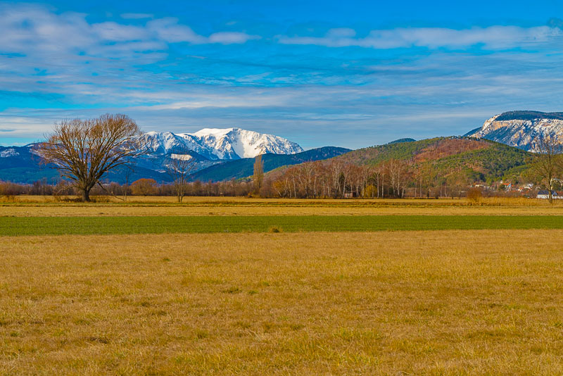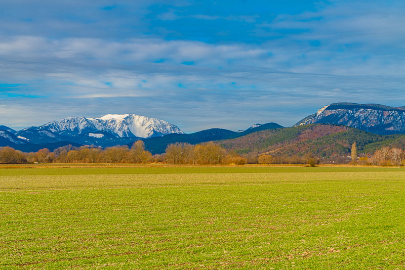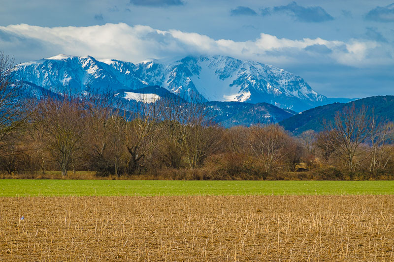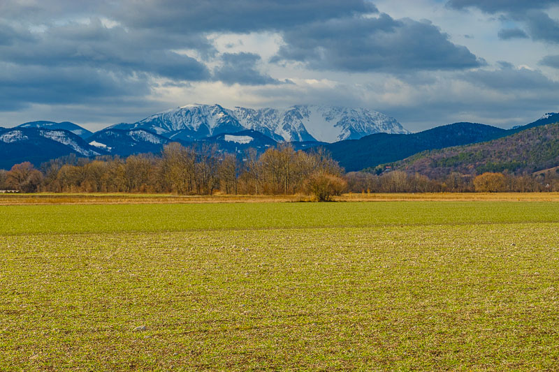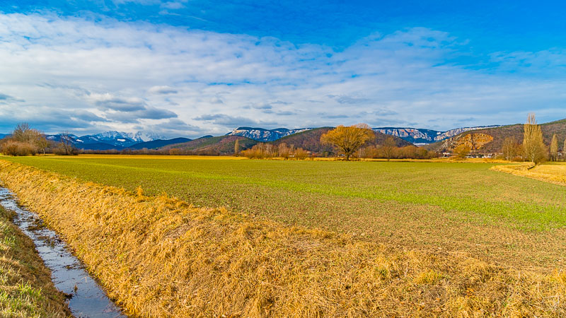 Sunshine on the fields now and shadow on the moutnain - opposite to before.