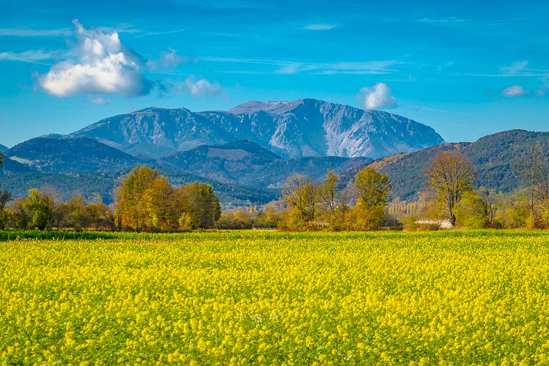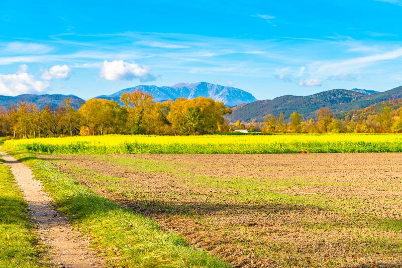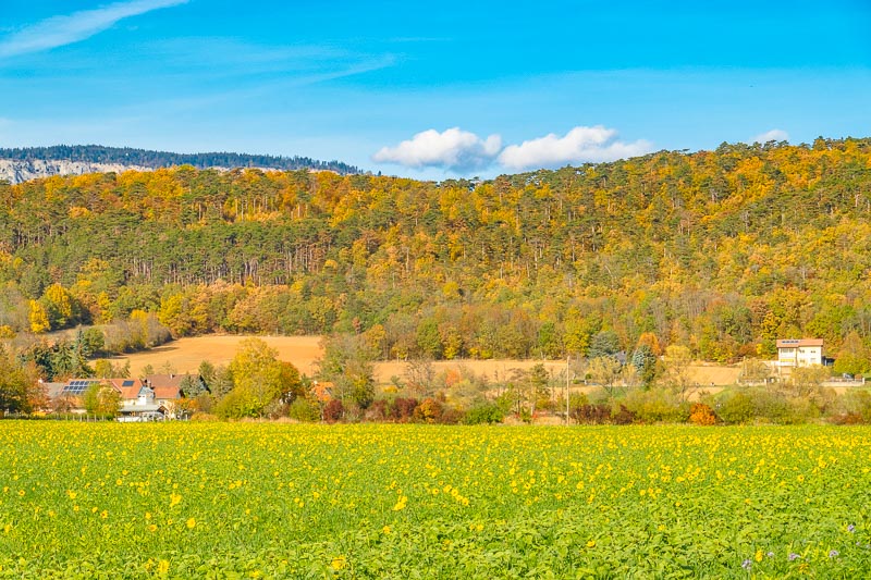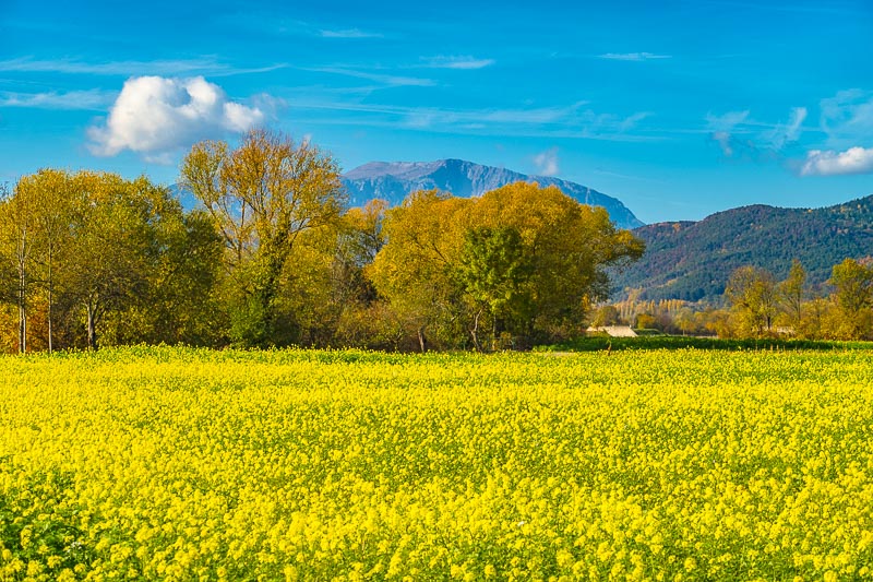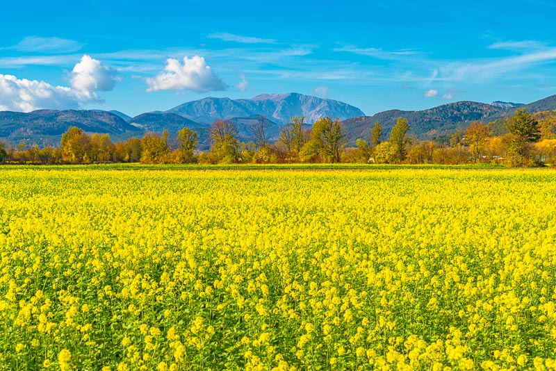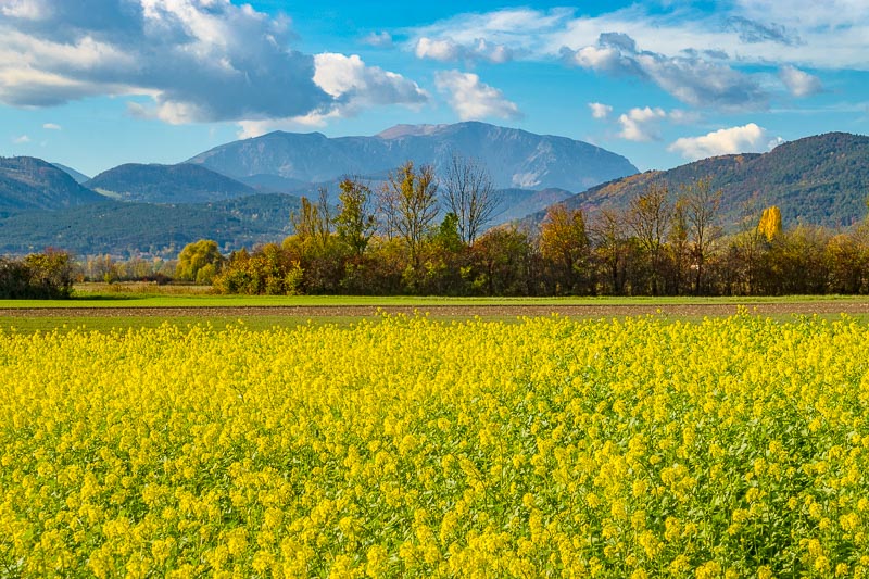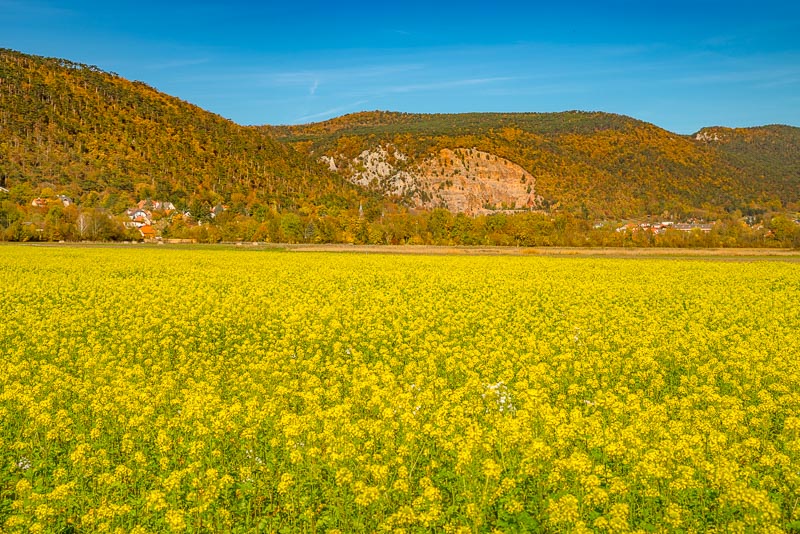 First yellow oilseed rape- (or mustard seed-?) fields are greeting over to the road.