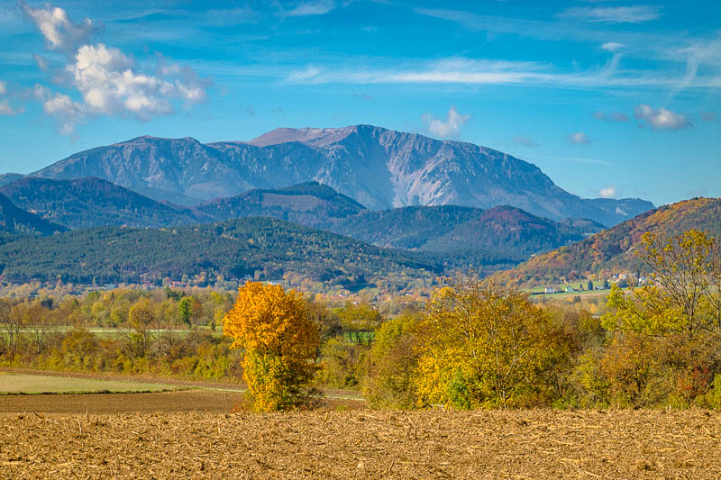 Panoramic picture of Schneeberg, a bit of Hohe Wand and the Fischau mountains. Winzendorf´s quarry to the right. Click here or into the picture for a larger display.