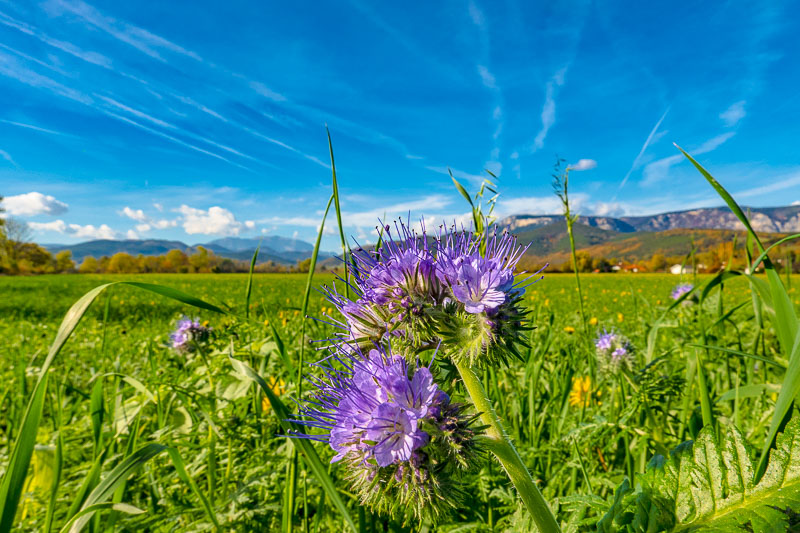 Purple tansy (Phacelia tanacetifolia) in the field ...