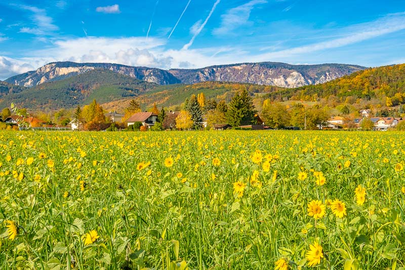 Panoramic picture with the Fischau mountains in the background. Click here or into the picture for a larger display.