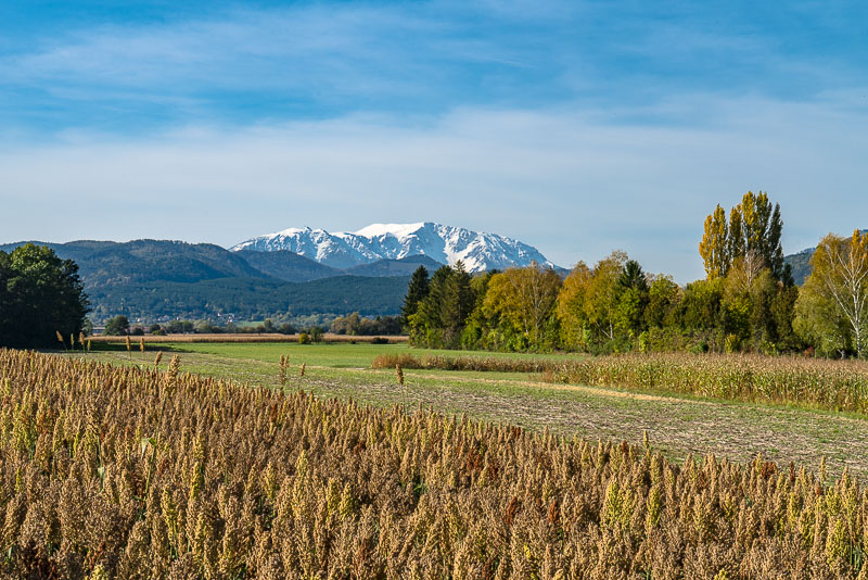 Near the mall hill called "Gesanger Bühel", the view to Schneeberg. Lots of new snow, some people even did this winter´s first ski tours.