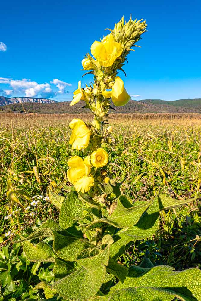 Eine ganz spät blühende Windblumen - Königskerze (Verbascum phlomoides).