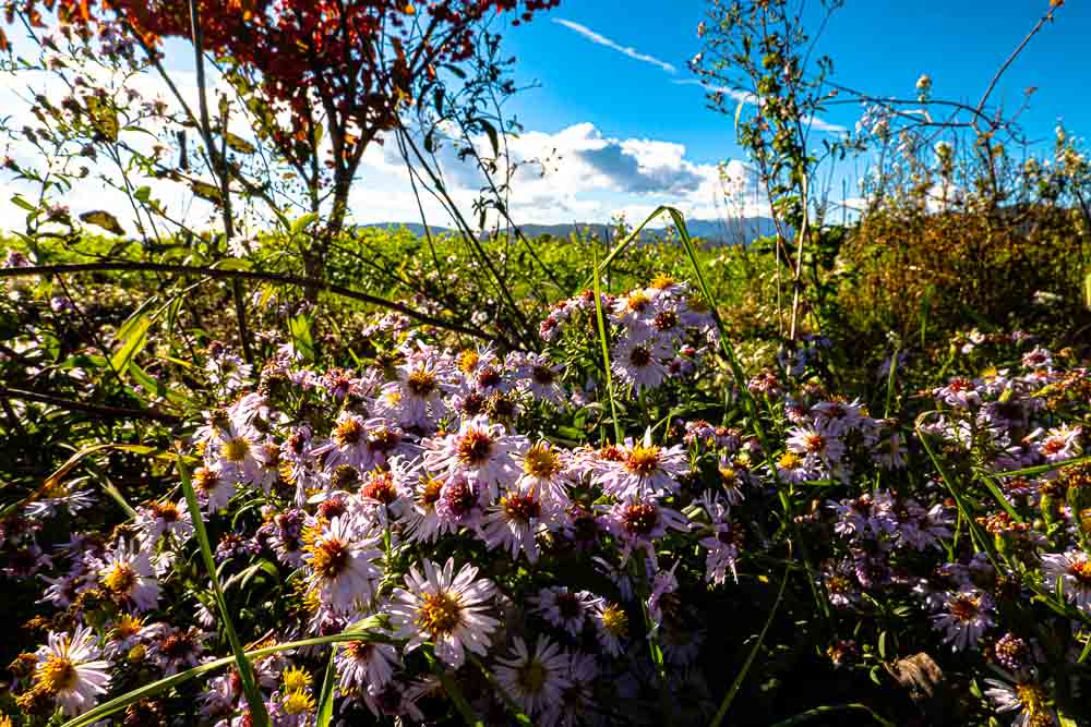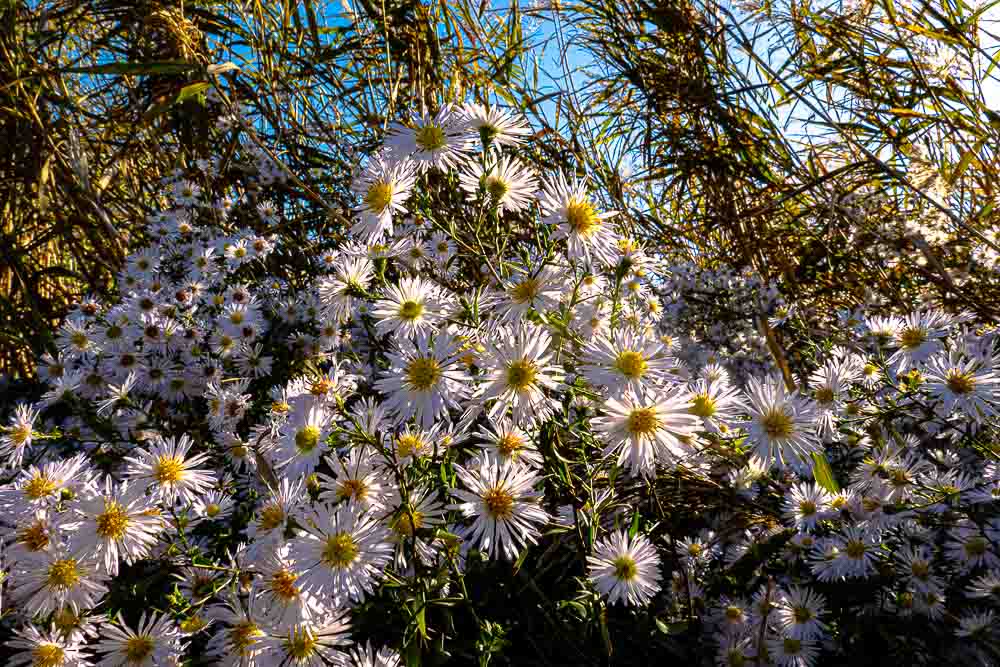 Einjähriges Berufkraut (Erigeron annuus) in hellvioletter und weißer Blütemfarbe.