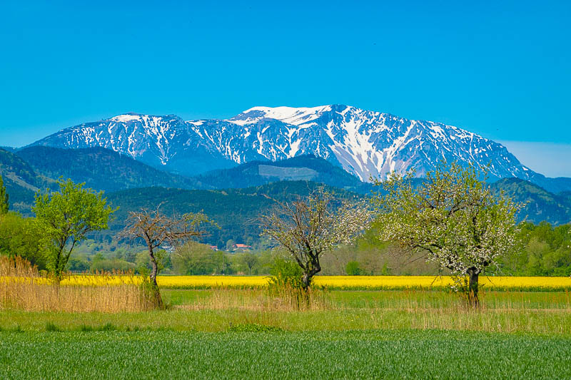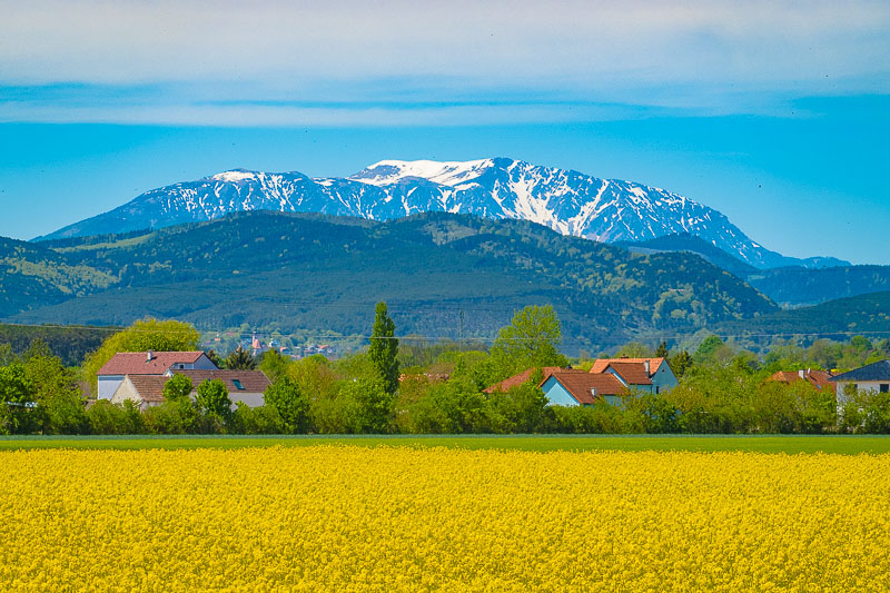 Another panoramic view of the oilseed rape fields, with Schneeberg and Hohe Wand. Click here or into the picture for a larger display.