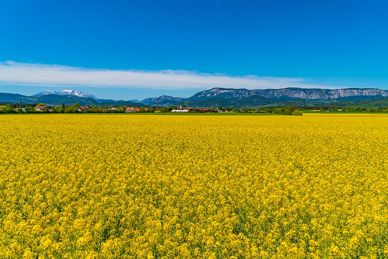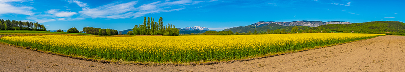 180 degrees panoramic picture of the rape field, with Schneeberg and Hohe Wand in behind. Click here or into the picture for a larger display.