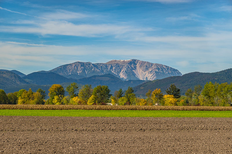 5.10.2022: A short bicycle tour to the fields to Saubersdorf. Autumn is on the way; the first snow on Schneeberg however is nearly molten apart from the huge summit snow cornice.