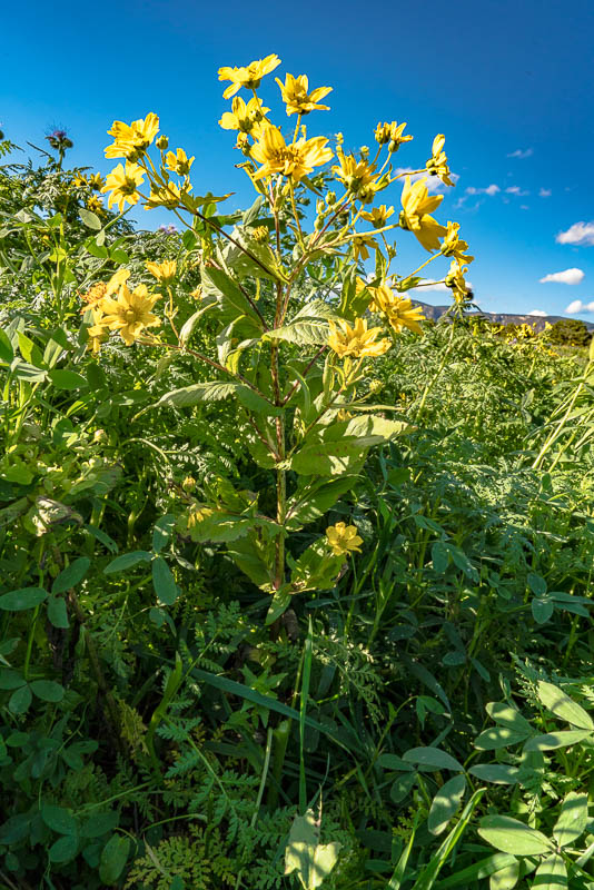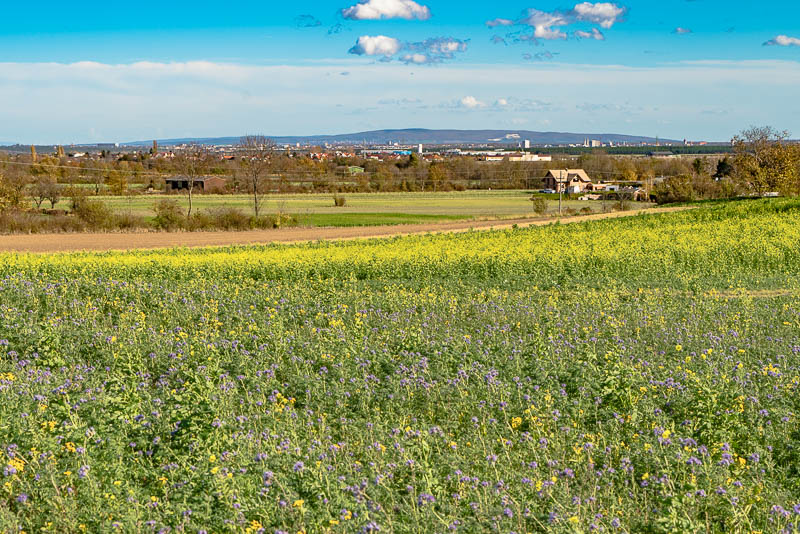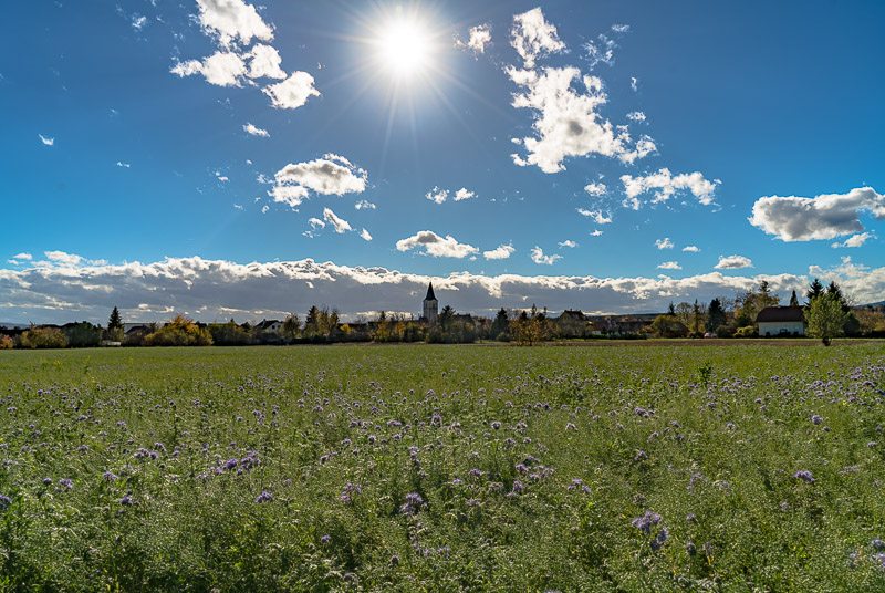 Neben Phacelias (Bienenfreund), Raps und Klee hat der Bauer hier auch Ramtillkraut (Guizotia abyssinica) angebaut, eine nicht frostharte tropische Pflanze, die niemals Samen wirft, daher nicht auswildern kann - und somit keine Probleme als Neophyt machen kann. Dank an Gabi Hanauer und Kurt Ableidinger für die Identifizierung.
