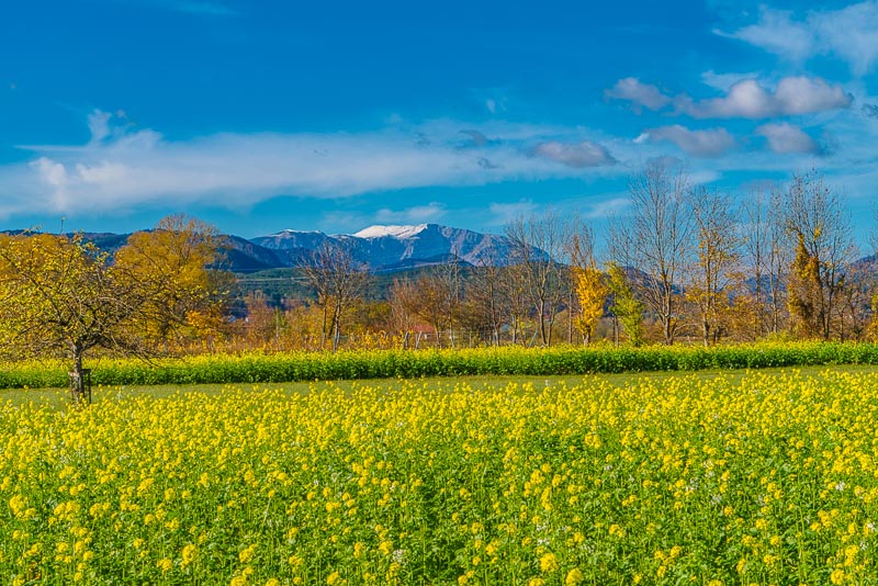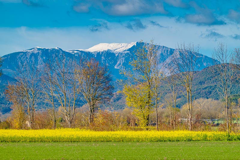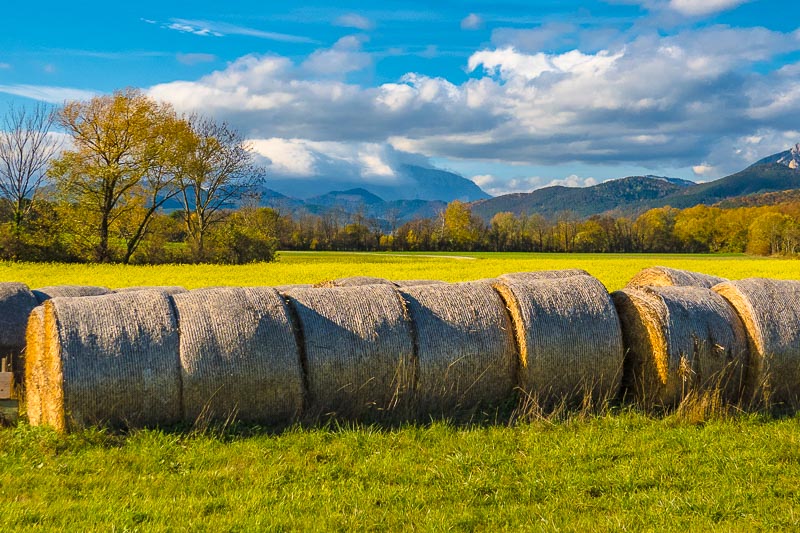 Hier herunten scheint die Sonne, aber es ist windig - der Föhn bläst uns lässt das Radfahren streckenweise mühsam werden.