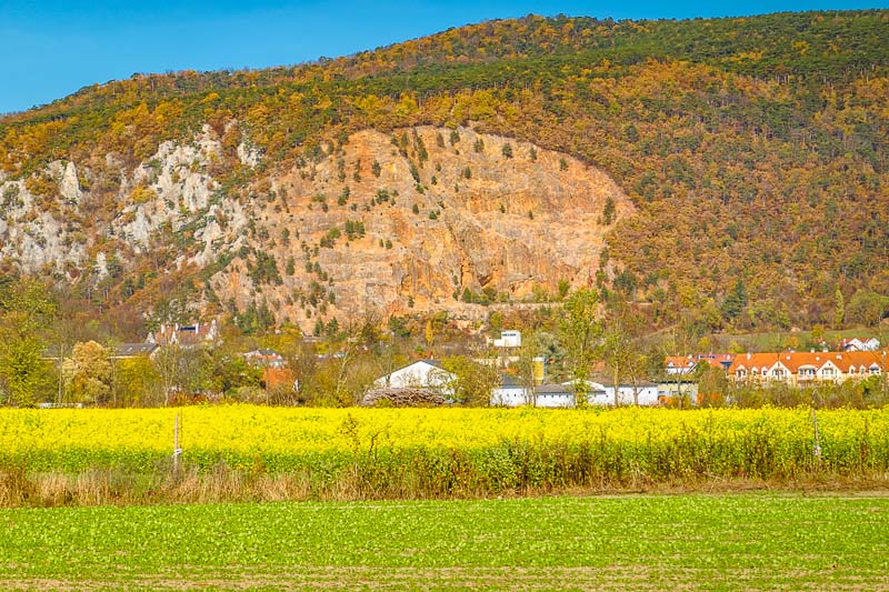 Ich biege nach links Richtung Saubersdorf ab. Offenbar wachsen auf diesem Feld die Kürbisse, die dann den Winter über im Hofladen Krenn in Saubersdorf verkauft werden.