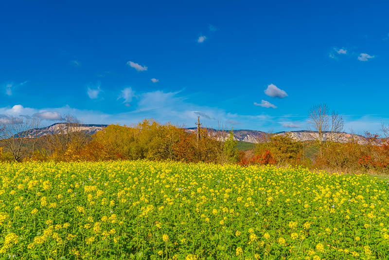 Die Raps- (oder Senfsaat-?) Felder werden wohl bis zum ersten Frost so ausschauen. Ernte wird das heuer natürlich keine mehr, aber bei der Gründungung belebt der entstehende Kompost nach dem Einackern den Boden.
