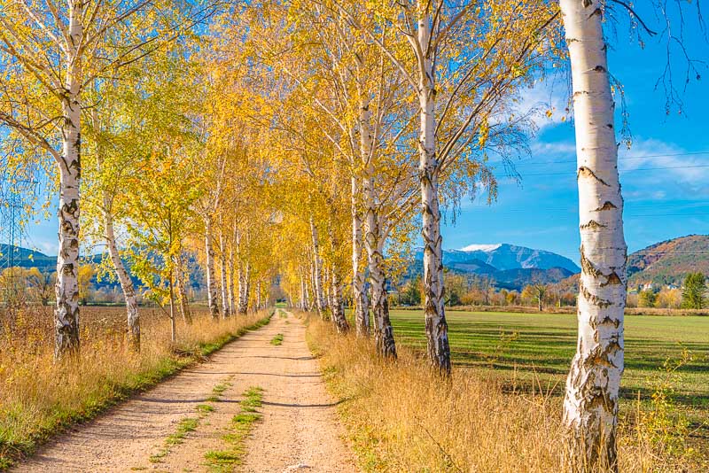 Die Birken haben schon einen Teil ihres wunderschön gelben Laubes verloren.