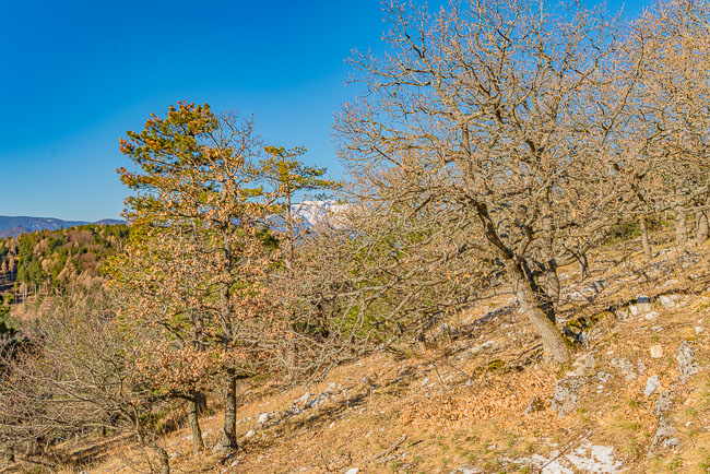 Wnderful forest steppeon the southern slope of Kienberg, with downy oaks standing around loosely.