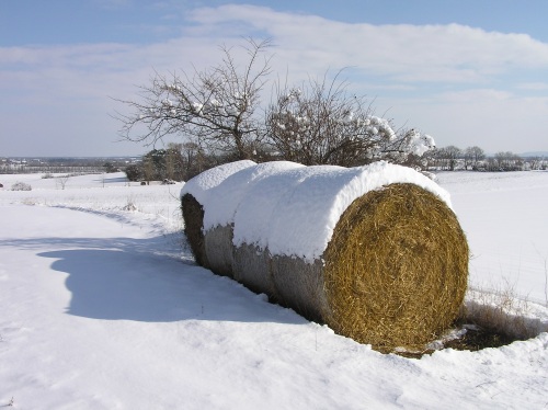 Snow capped bales of straw