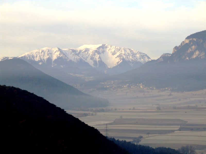 Ein Stück weiter, entlang der Geländekante zur Prosset Schlucht, ist der Blick zum Schneeberg weit besser.