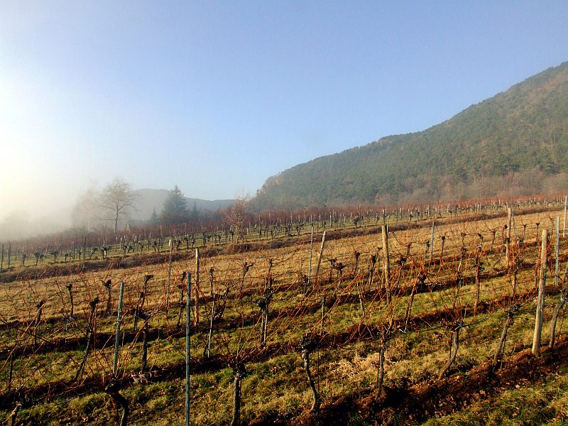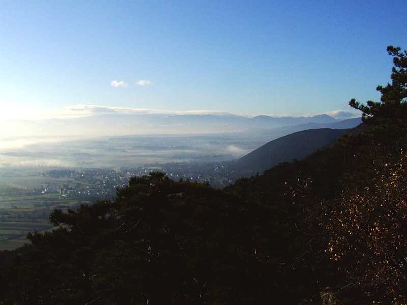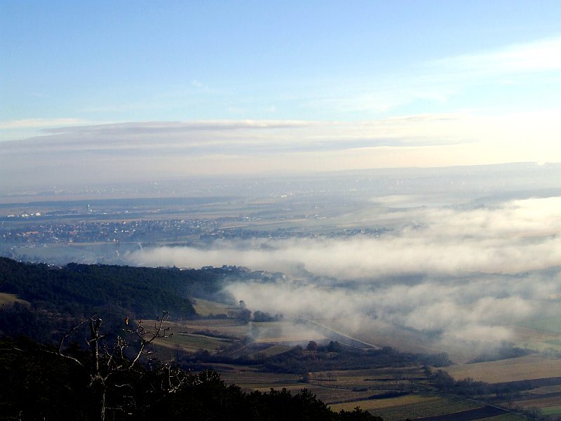 Blick vom Marmorsteinbruch über Winzendorf. Die Nebel haben sich schon fast aufgelöst.