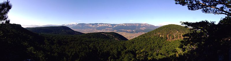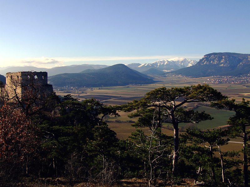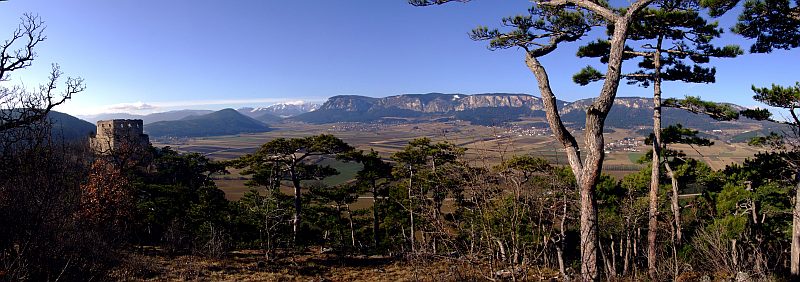 Panoramablick vom Marmosteinbruch über das südliche Wiener Becken. Hierher oder ins Bild klicken für eine größere Darstellung