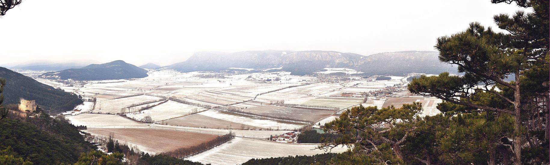 Panorama des westlichen Teils der Neuen Welt, von etwas unterhalb des Schlossberg - Gipfels aus gesehen.
