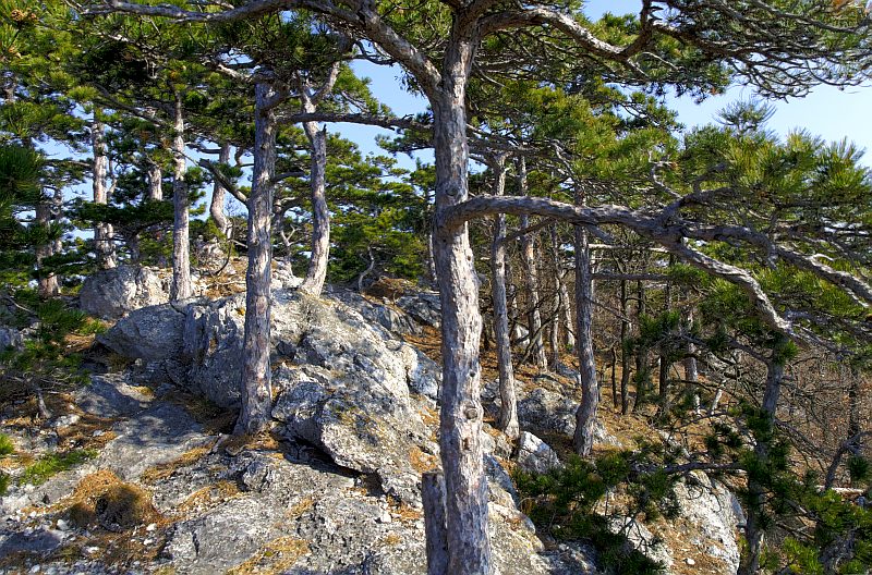 I climb up to the southwestern end of Engelberg - stepp forest and a very short easy scrambling passage.