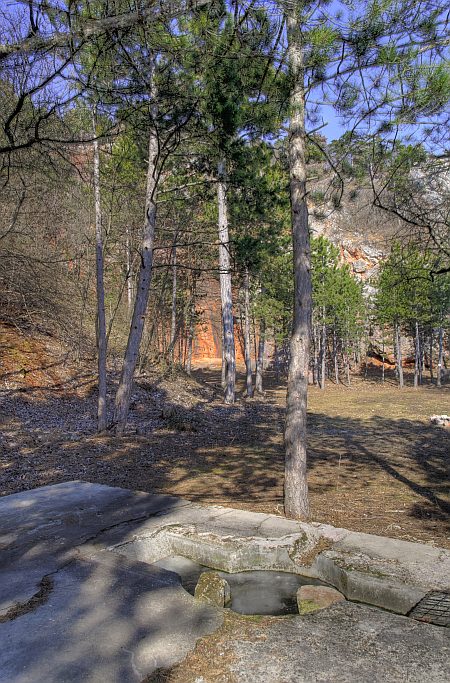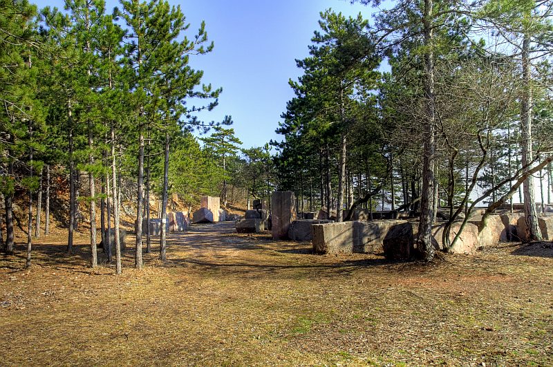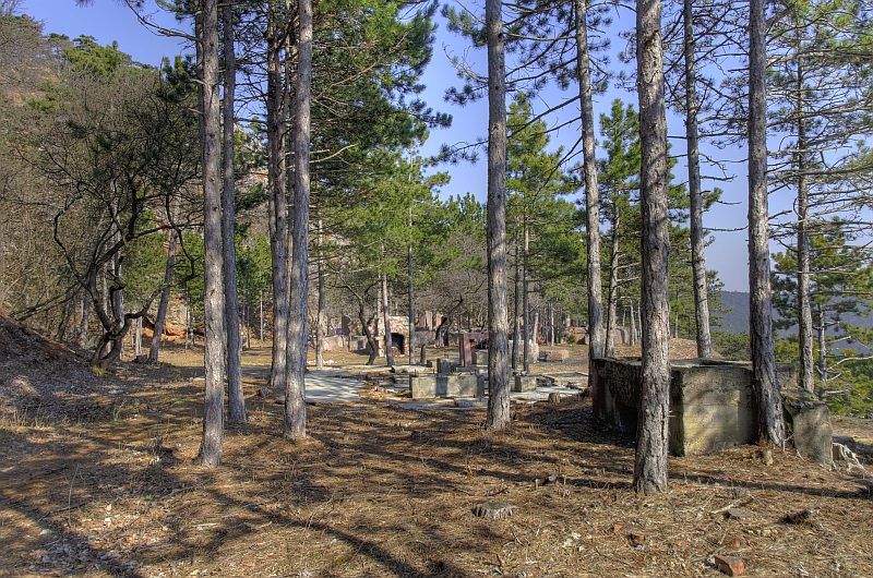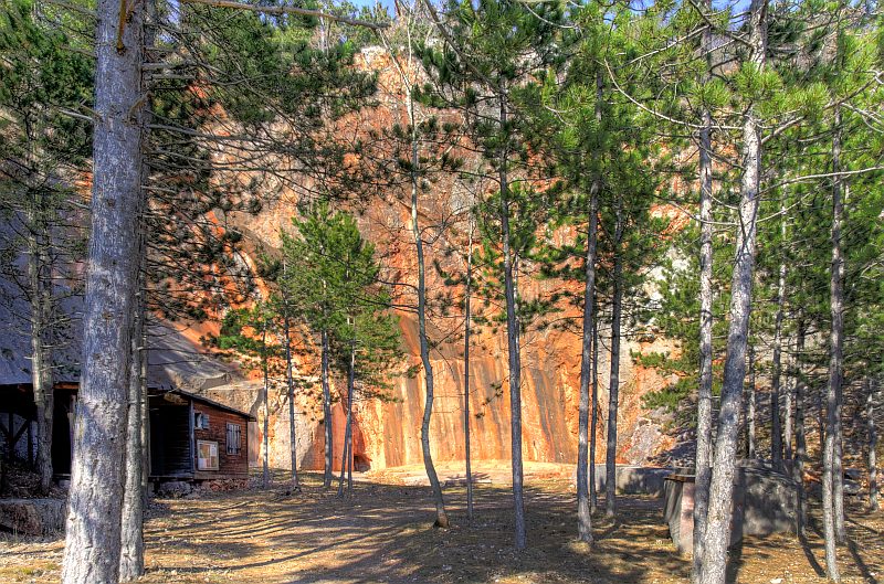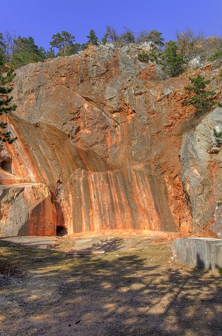 The quarry wall. Here, brown marble had been cut fromo the rocks using steel ropes.