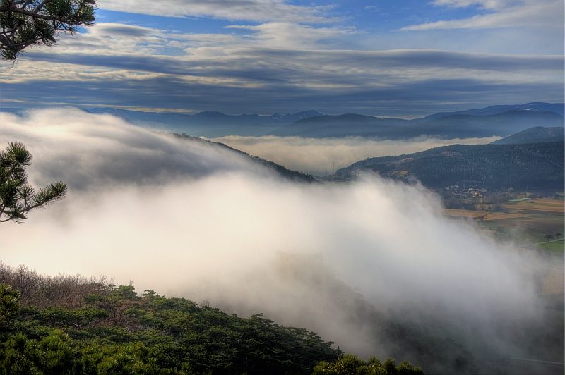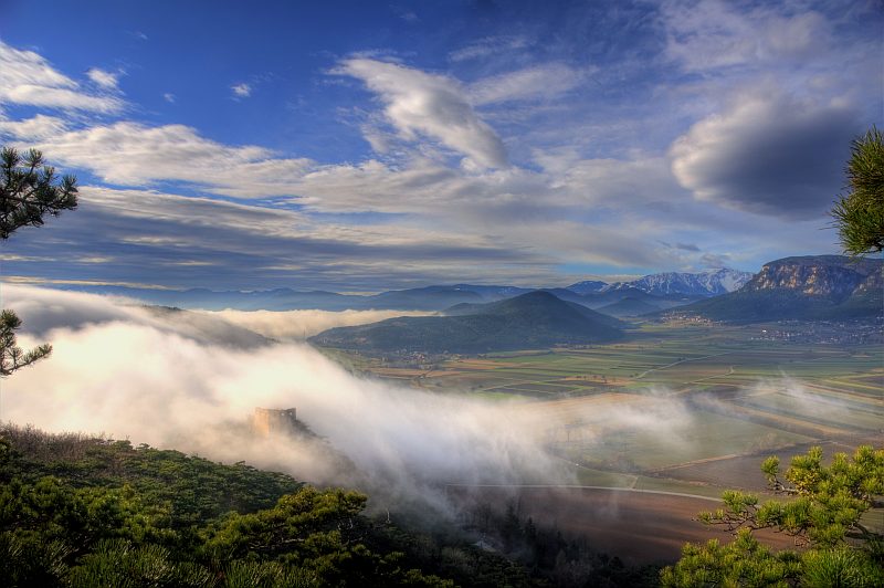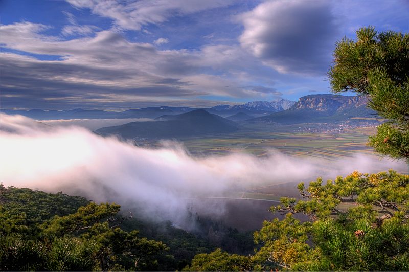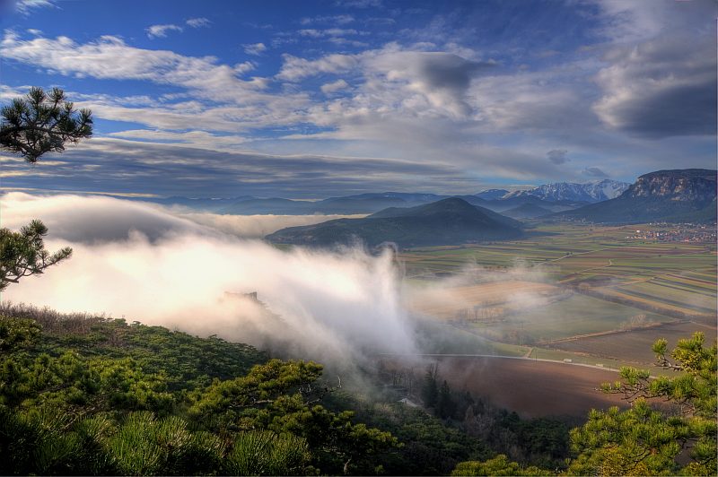 Today, I wake up to a clear sky and sunshine. The weather report is for mist in the dales however. During the following hour, the mist appears, drawing up from Wiener Neustadt. As this happened just recently and a glimpse of blue sky is still visible, I decide to have a look at the mist drawing up to the West, and start for a short walk on Schlossberg.