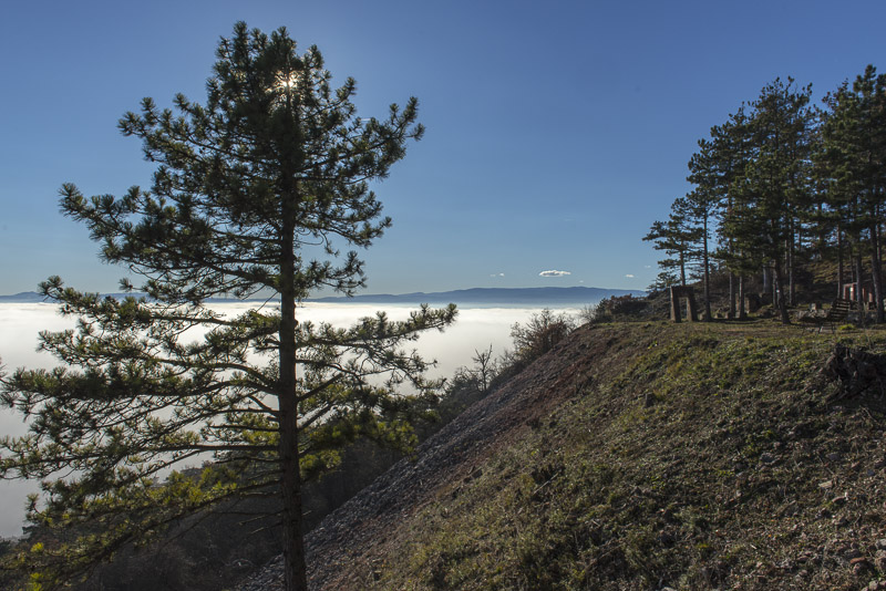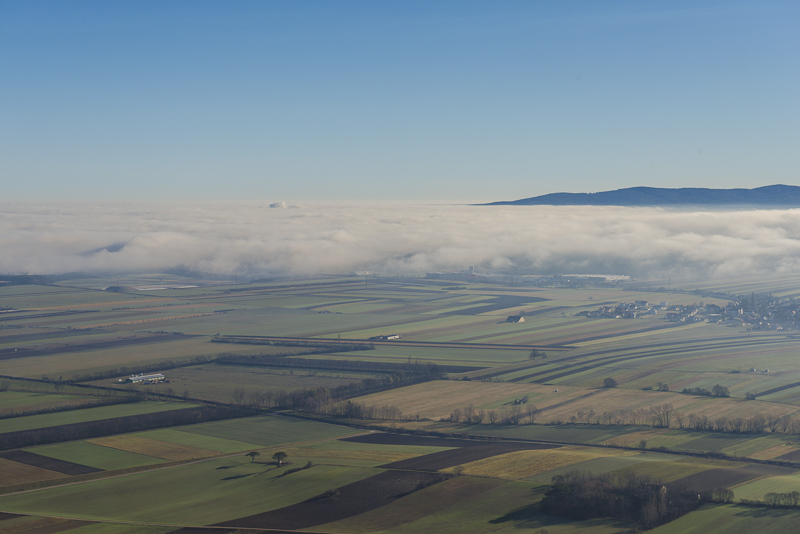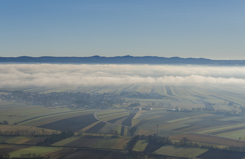 Mist covering the Steinfeld, Rosalia and Bucklige Welt in behind.