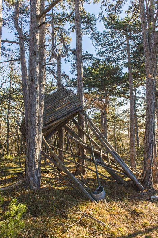 After the recent gales, this hide has seen better times.