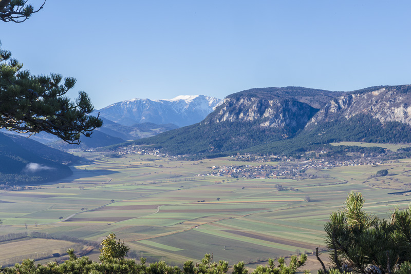 Sonnwendstein at the horizon, in the centre of the picture.