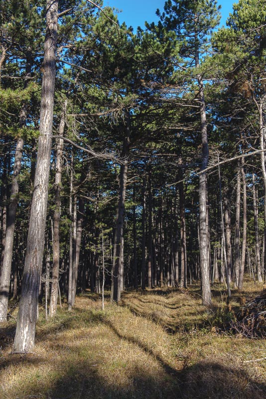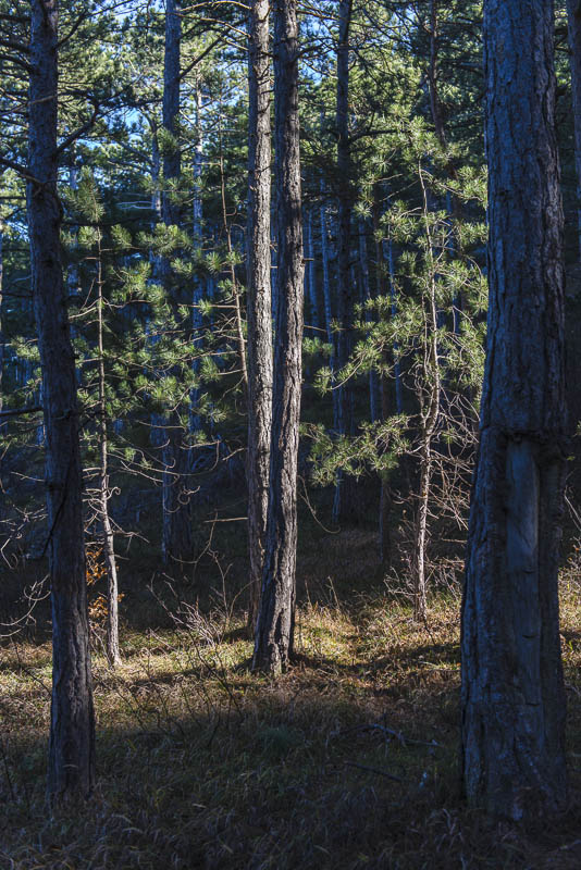 Walking through plain forest ...