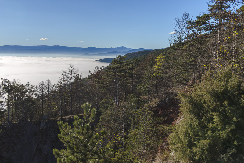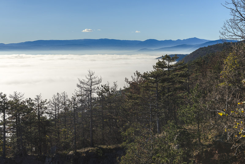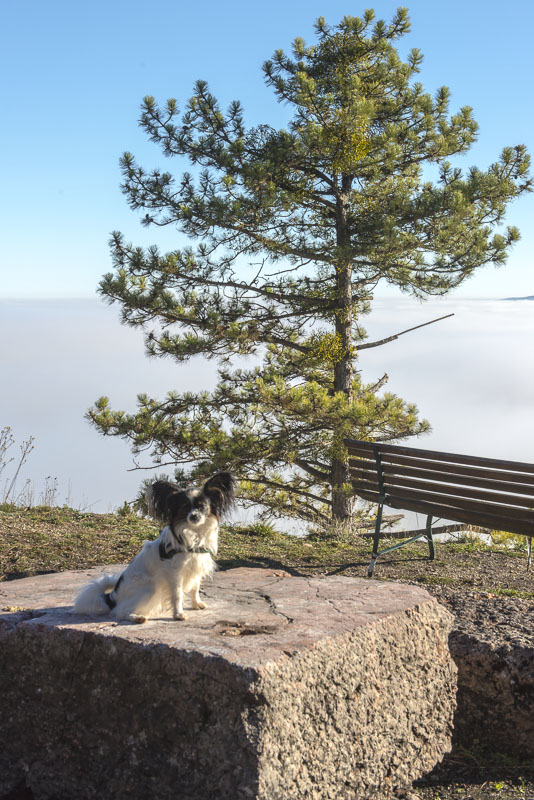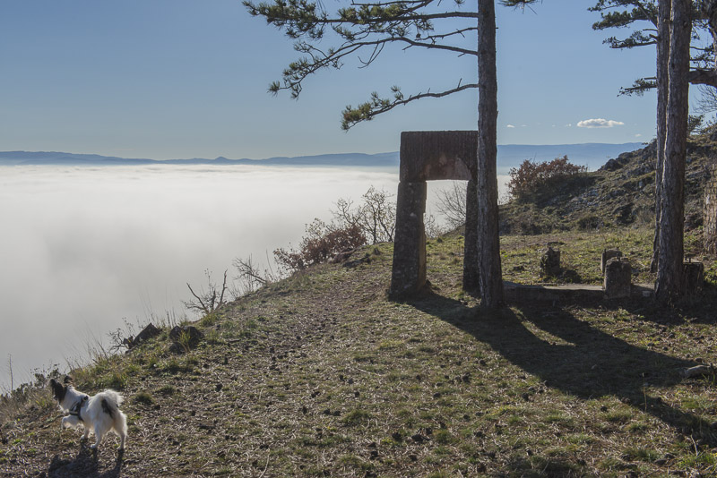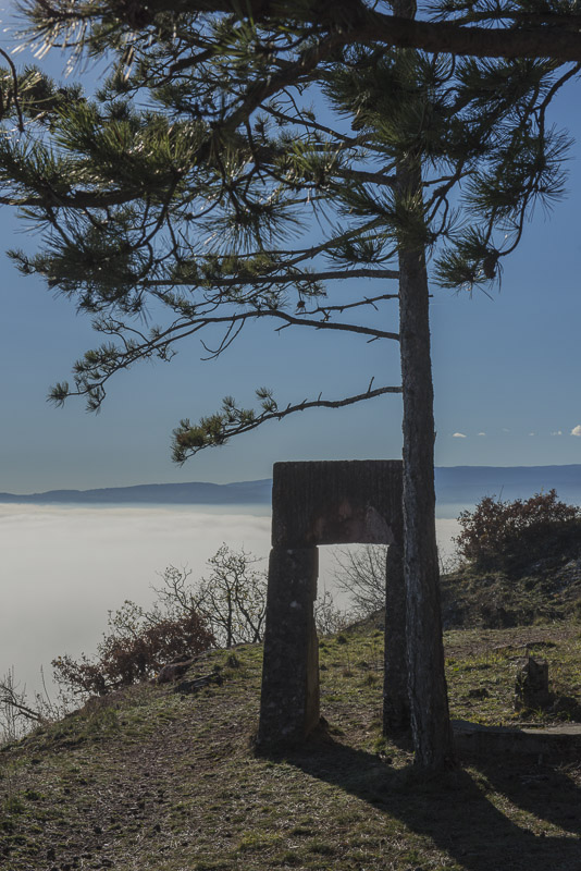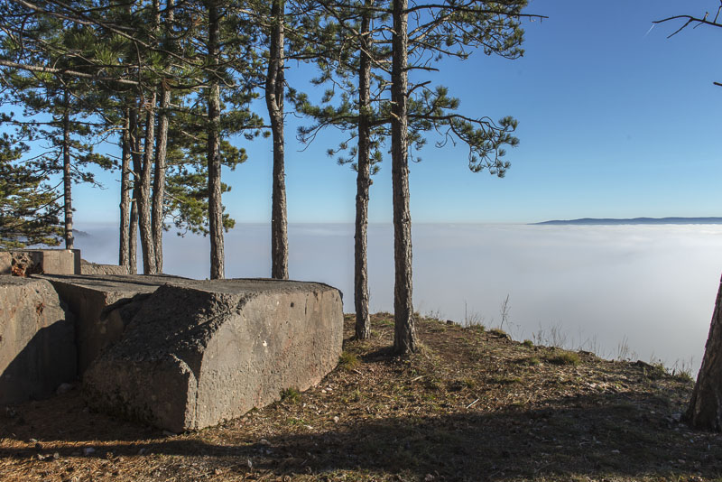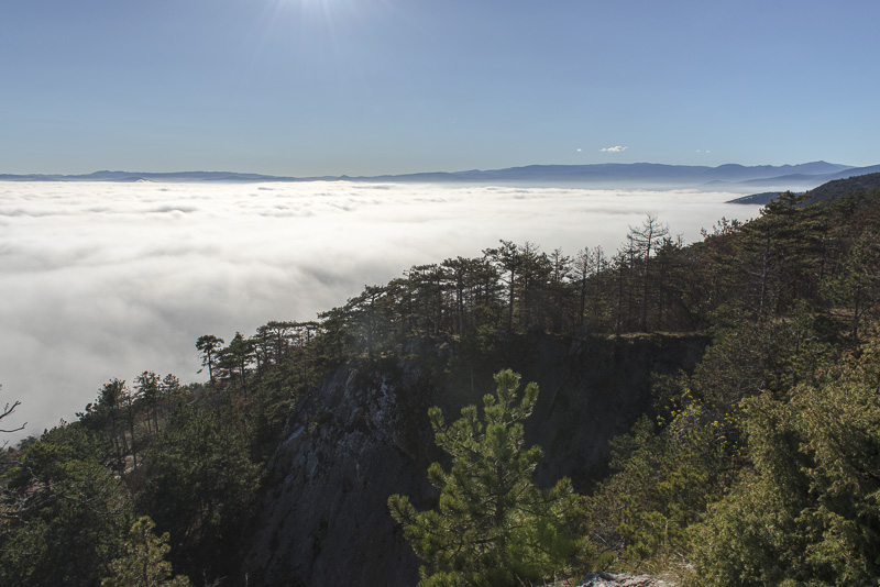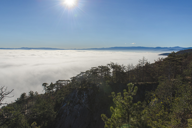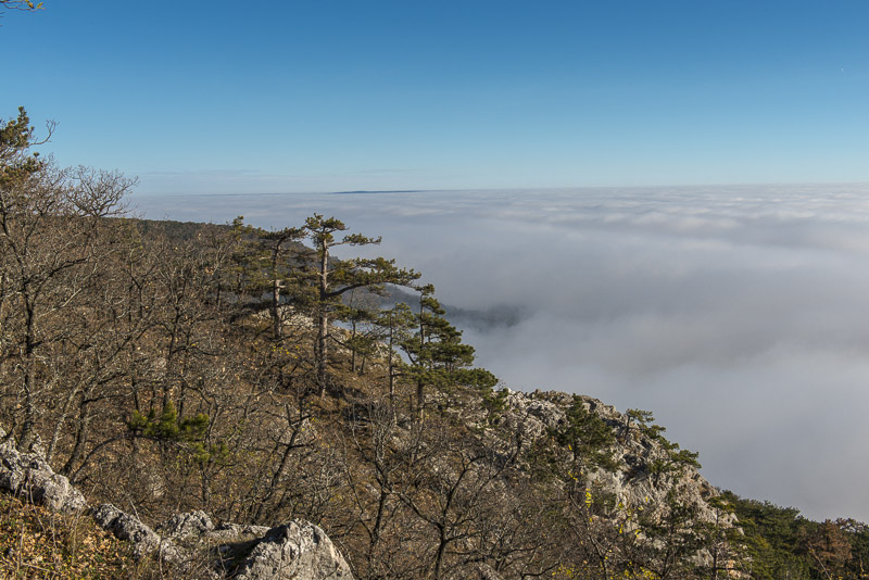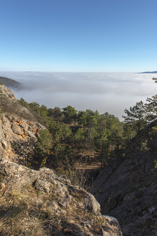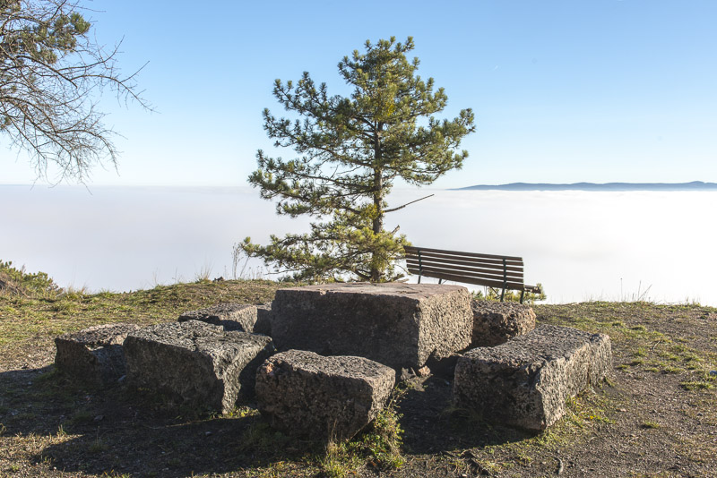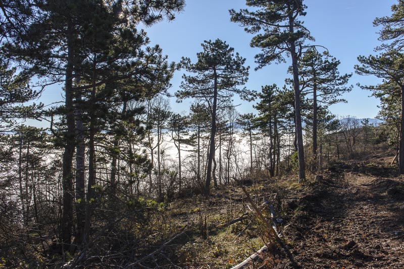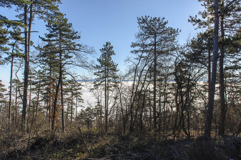 Due to extensive felling of trees there is a good view to the Steinfeld, which now is completely covered by ground fog.