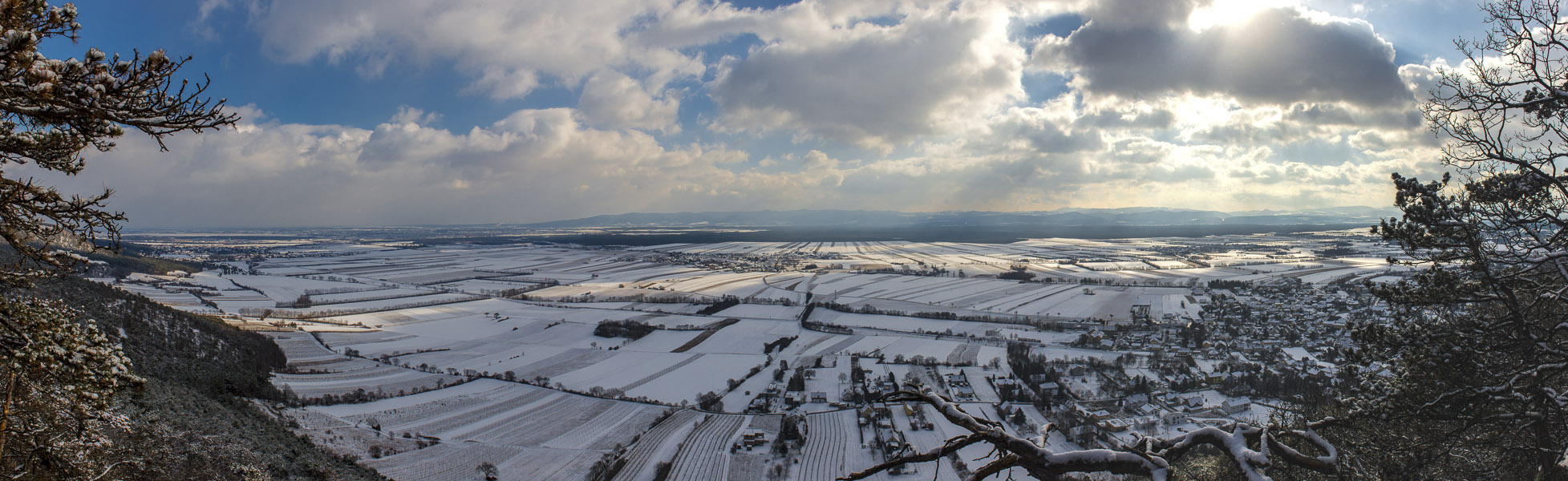 Panoramic picture of the Steinfeld, with Weikersdorf in the centre, in the foreground to the right is Winzendorf.