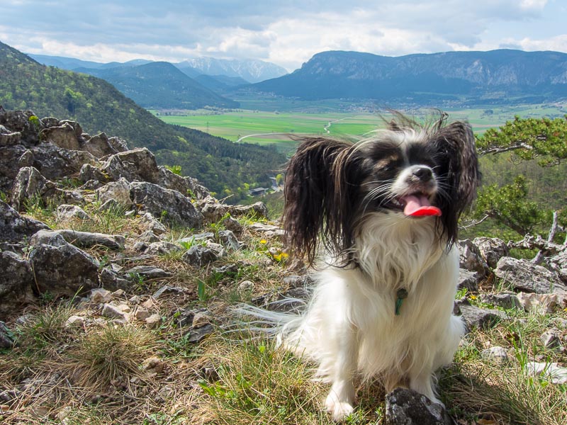 Lucy muss die meiste Zeit an der Leine gehen: neben den Felsabstürzen und der nahen Wildfütterung wäre das zu gefährlich.