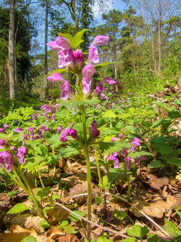 Im Wald blüht die Gefleckte Taubnessel (Lamium maculatum).