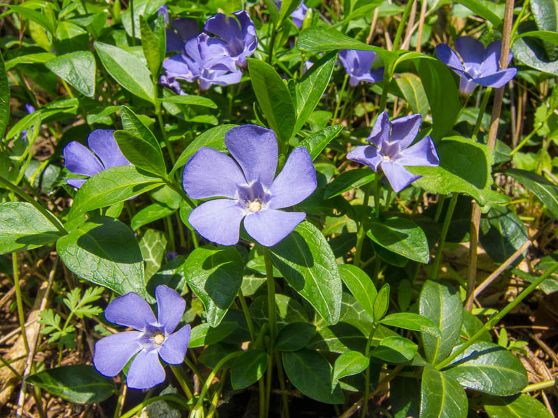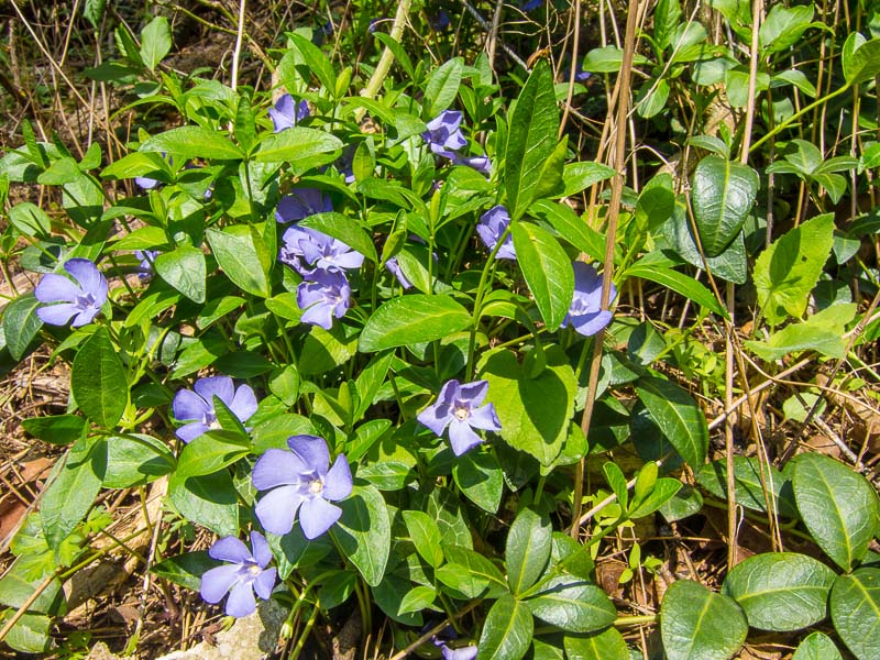 Neben der Straße auch Großes Immergrün (Vinca major).